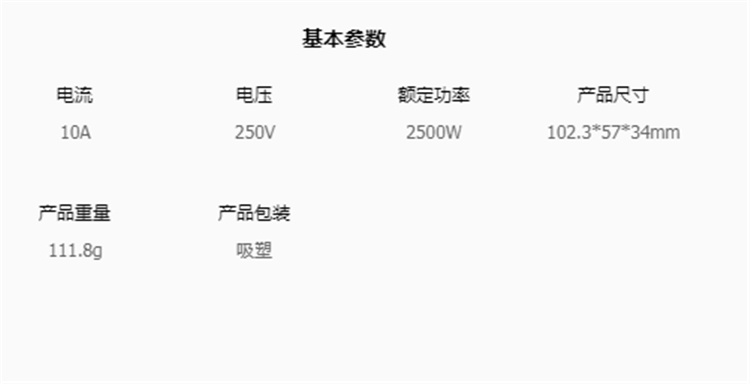 公牛GN-920L漏電保護插頭基本參數圖
