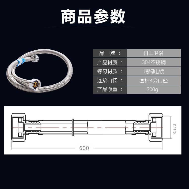 日豐不銹鋼編織軟管冷熱進水軟管家用配件龍頭馬桶熱水器防爆水管