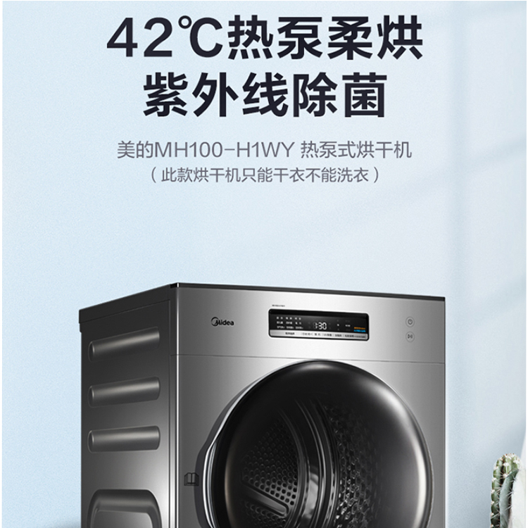 美的家用烘干機42攝氏度熱泵柔烘,紫外線除菌,除菌效果更好。