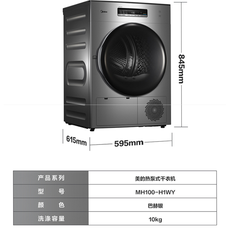 美的 Midea烘干機家用線下同款10公斤干衣機健康烘干 熱泵式紫外線除菌 衣干即停