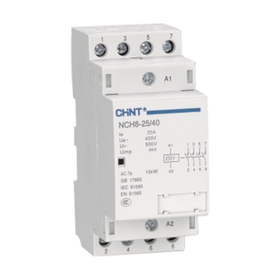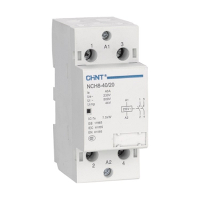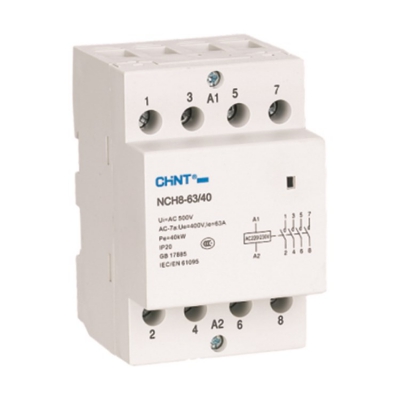 正泰NCH8系列家用交流接觸器(以下簡稱接觸器)主要適用于交流50Hz(或60Hz),額定工作電壓至400V額定工作電流至63A的電路中,控制家用電器和類似用途的低感微感負載。