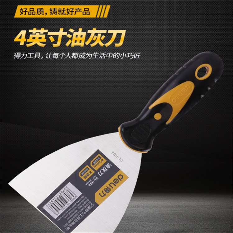 得力不銹鋼油灰刀刀片采用不銹鋼精工鍛壓而成,表面拋光,切削鋒利。