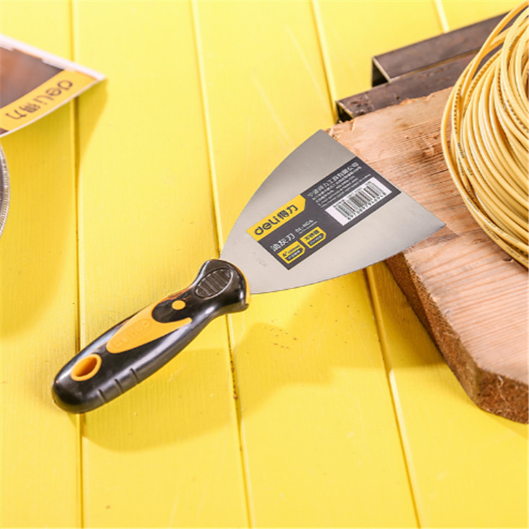 得力不銹鋼油灰刀注塑手柄,握感舒適。