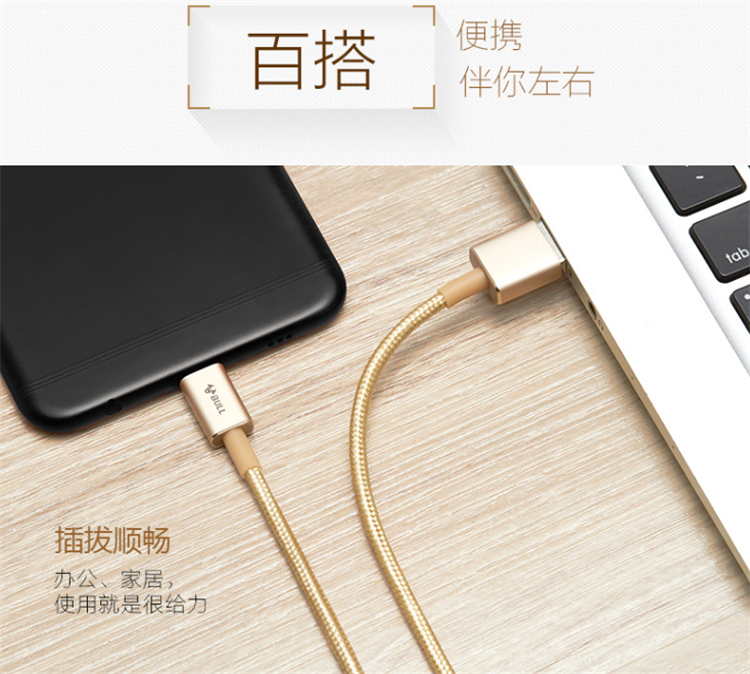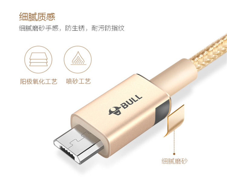 公牛安卓尼龍編織數據線細膩磨砂手感,防生銹、防污耐指紋。