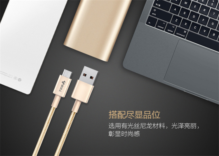 公牛安卓尼龍編織數據線選用有光絲尼龍材料,光澤亮麗,彰顯時尚感。