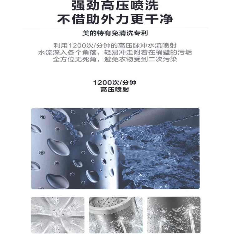 美的全自動波輪洗衣機免清洗專利,強高壓噴洗,不借外力更干凈。