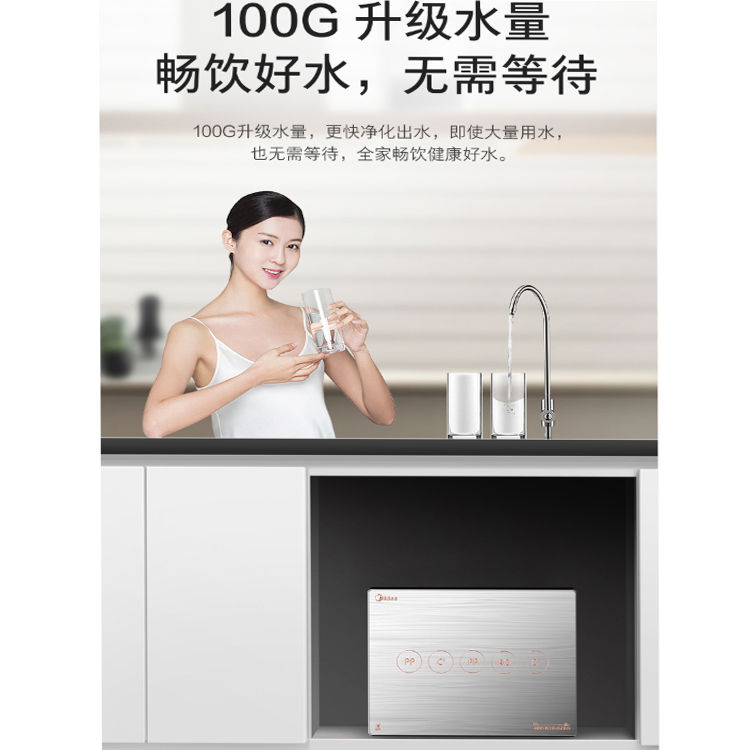 美的JD100直飲凈水器升級水量,大量用水無需等待。