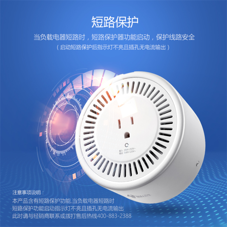 公牛電源變壓器P2GN-P2當負載電器短路時,短路保護器功能啟動,保護線路安
