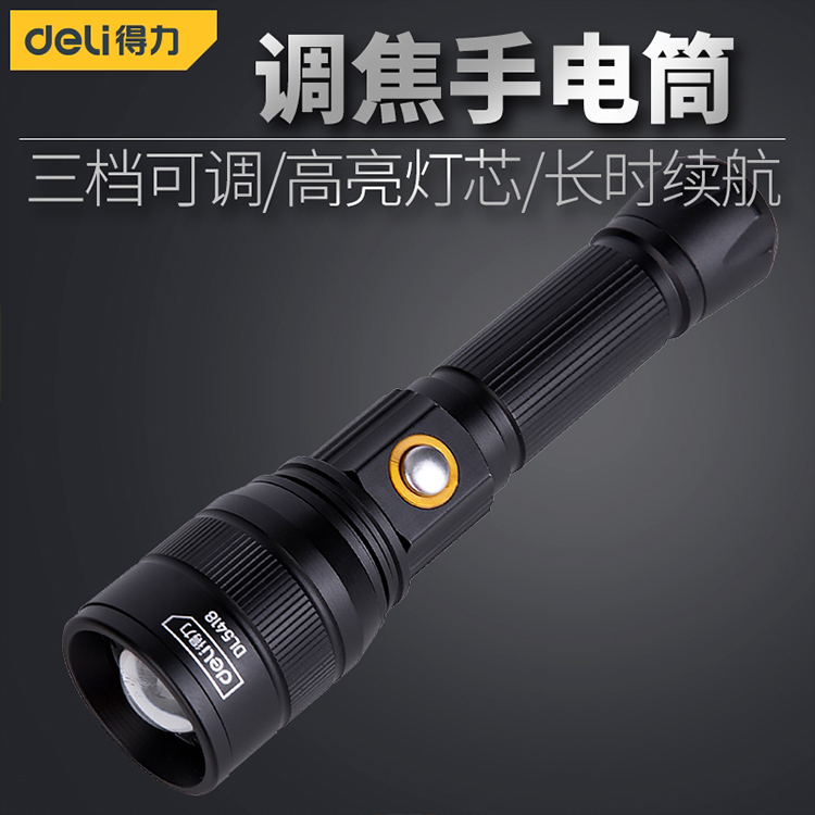 寧波得力調焦手電筒 DL5417強光充電戶外遠射超亮手電燈探照