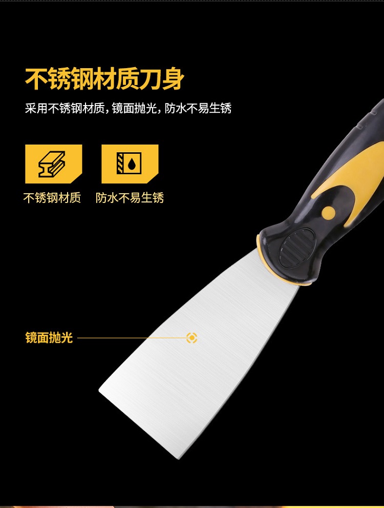 得力油灰刀鋼鏟刀產品刀片采用不銹鋼精工鍛壓而成,表面拋光,切削鋒利。
