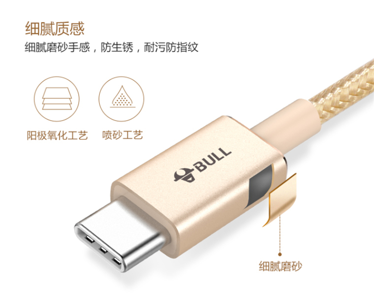 公牛充電器數據線尼龍編織有光絲尼龍編織,金屬拋光邊緣,精致細節提升質感 。