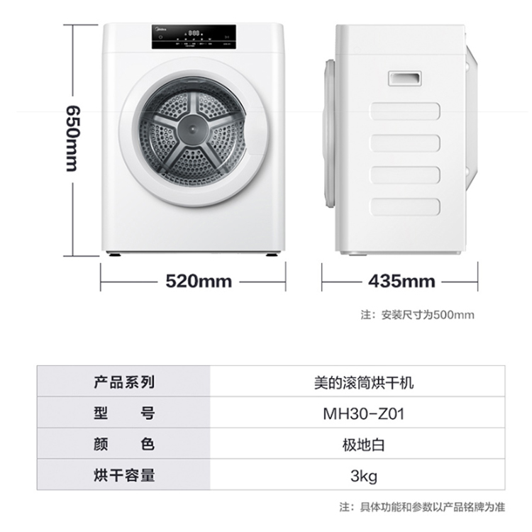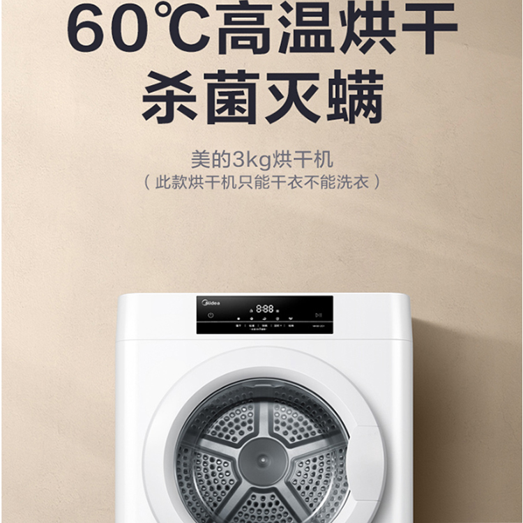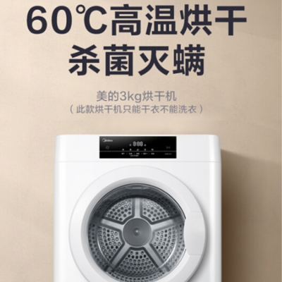 美的 (Midea) 3公斤烘干機(jī) 小干衣機(jī)迷你干衣機(jī) 寶寶專享 60°C健康烘干