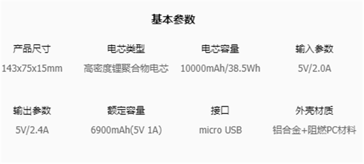 公牛小巧迷你移動電源基本參數圖