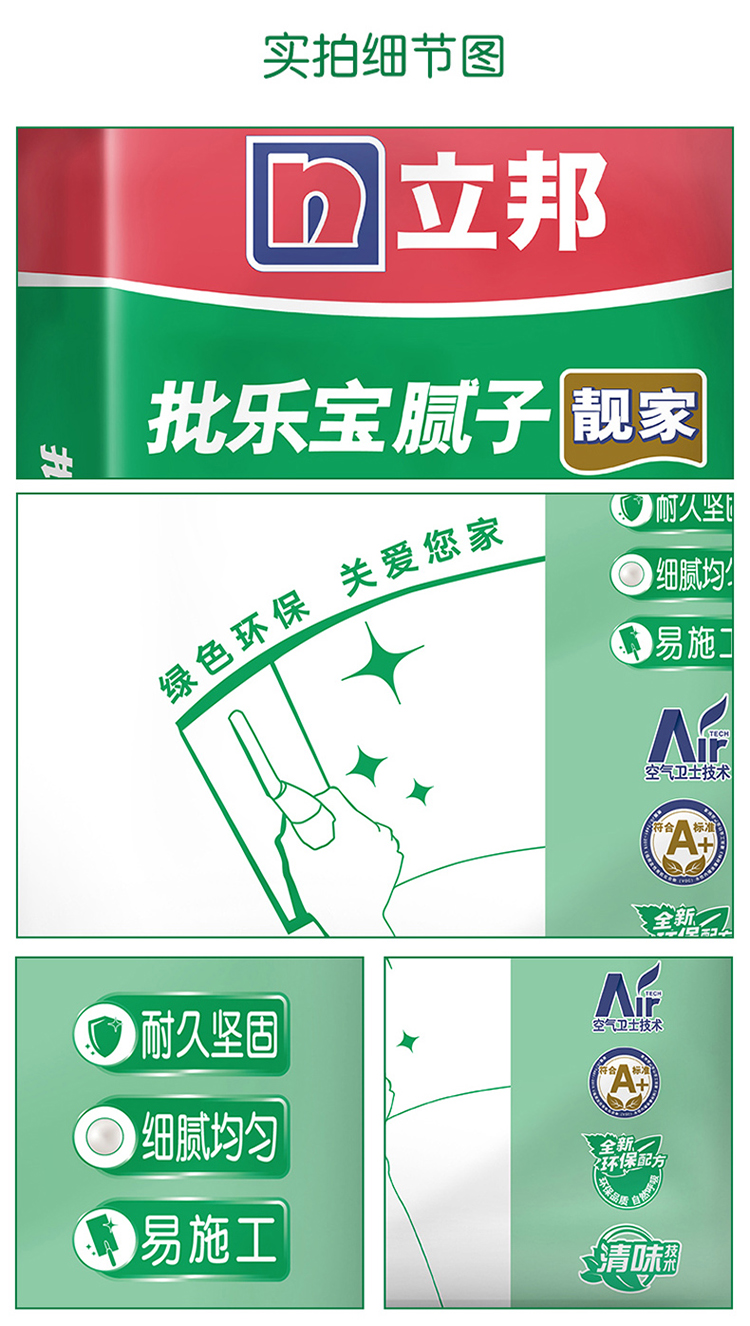 立邦 批樂寶靚家膩子采用純凈好原料,先進技術,使涂刷后室內空氣質量*通過產品嚴苛檢測。
