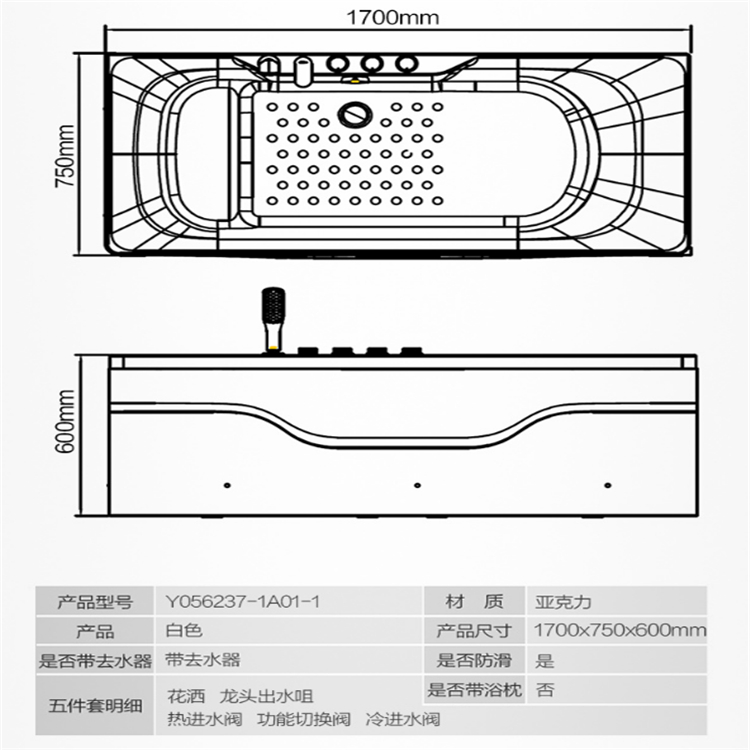 加厚亞克力浴缸 Y056系列九牧優(yōu)質(zhì)五金,使用壽命長(zhǎng),接水件均以優(yōu)質(zhì)黃銅強(qiáng)力鑄造而成,耐高壓耐高溫。