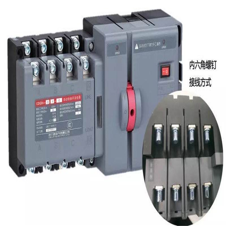 德力西CDQ0S系列雙電源自動轉換開關電器實現常備電源間的手工切換、自動切換,同時可實現雙分位置掛鎖