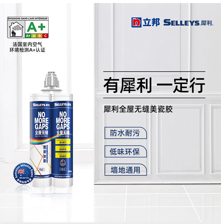 立邦犀利全屋無縫美瓷膠:低味環保源自自然更健康以環氧樹脂為原料的密封填縫材料,不含甲醛環保低VOC,符合國家環保標準,凈味安全。