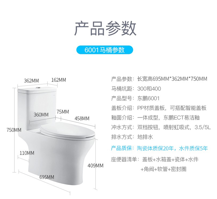 東鵬衛浴(DONGPENG)抽水馬桶3600環繞布水孔噴射沖水,排污順暢