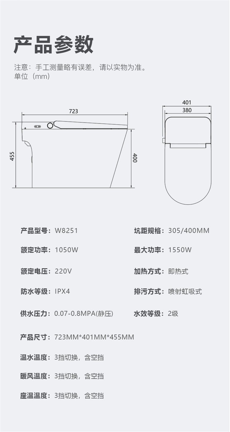 全自動沖水無水箱虹吸式?jīng)_洗烘干坐便器 W8251