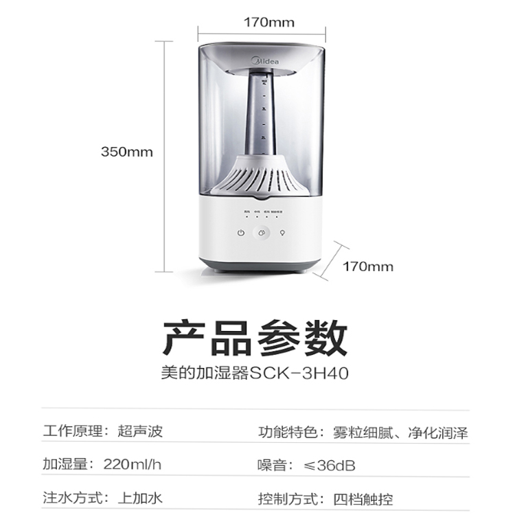 美的(Midea)加濕器安靜加濕,無(wú)打擾不擾眠。