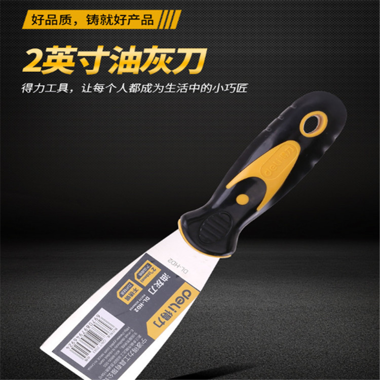 得力不銹鋼油灰刀注塑手柄,握感舒適。