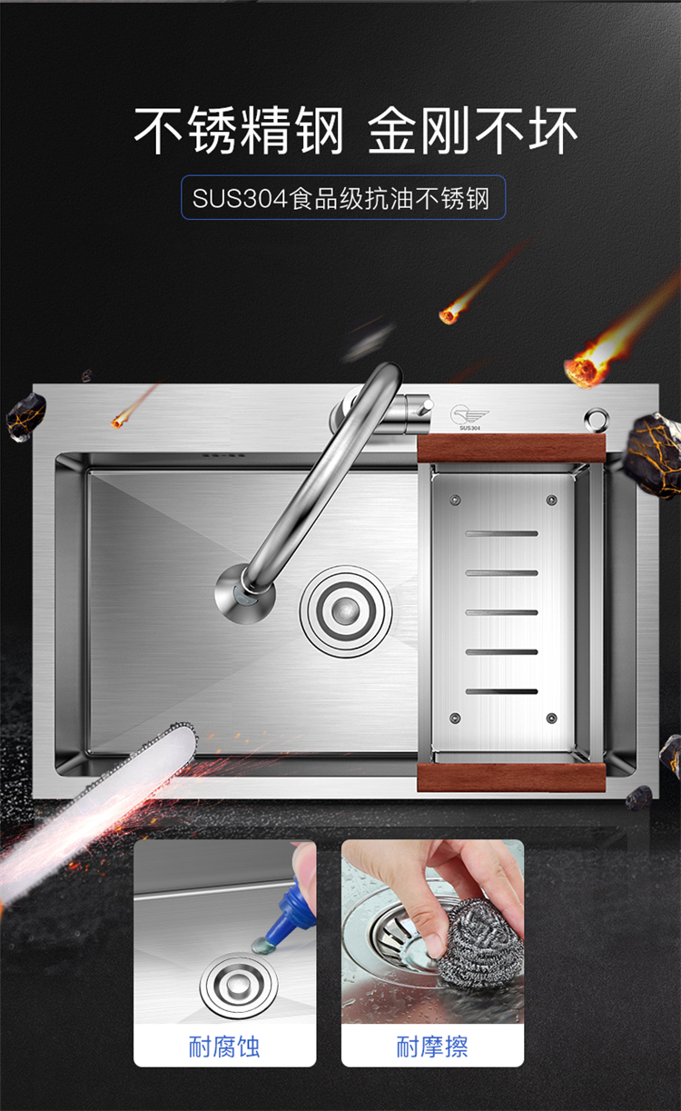 洗菜盆大單槽304不銹鋼廚房面積小于15平方,安裝大單槽較為合理,