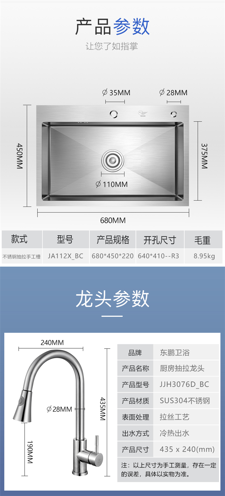 - 型號(hào)名稱手工大單槽+抽拉龍頭