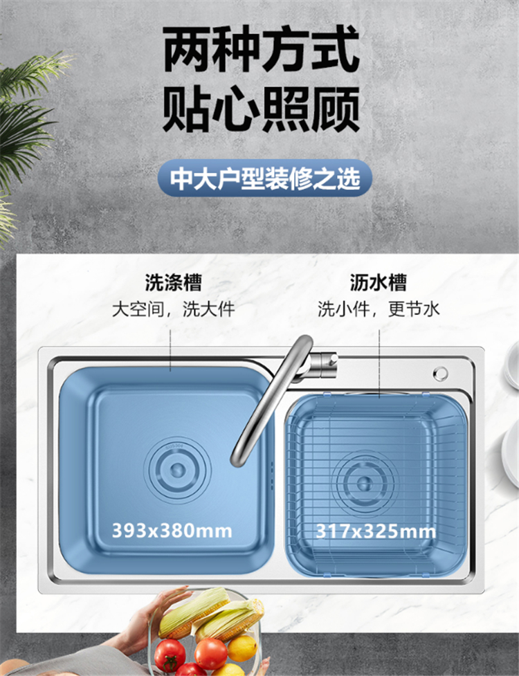 廚房水槽304不銹鋼環保龍頭約合20人份餐盤 僅需一槽即可容下
