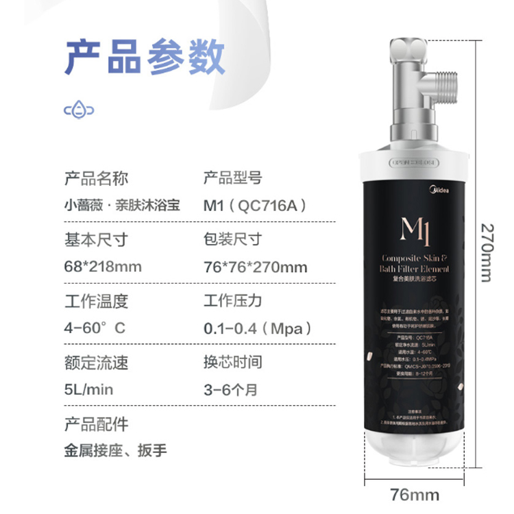 美的(Midea)美膚濾芯實力除余氯,締造水感肌膚。