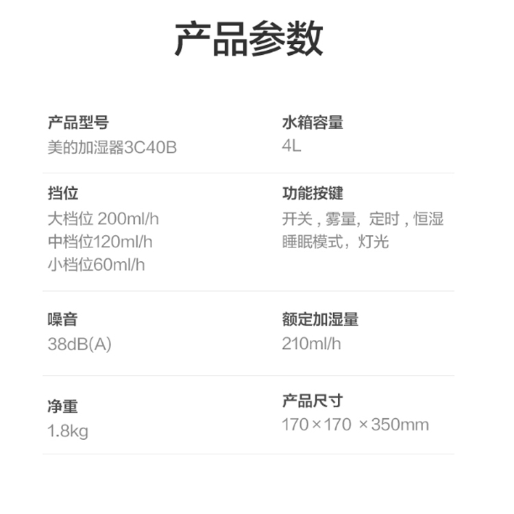 美的(Midea)空氣加濕器凈菌銀離子技術,潔凈水霧守護健康。