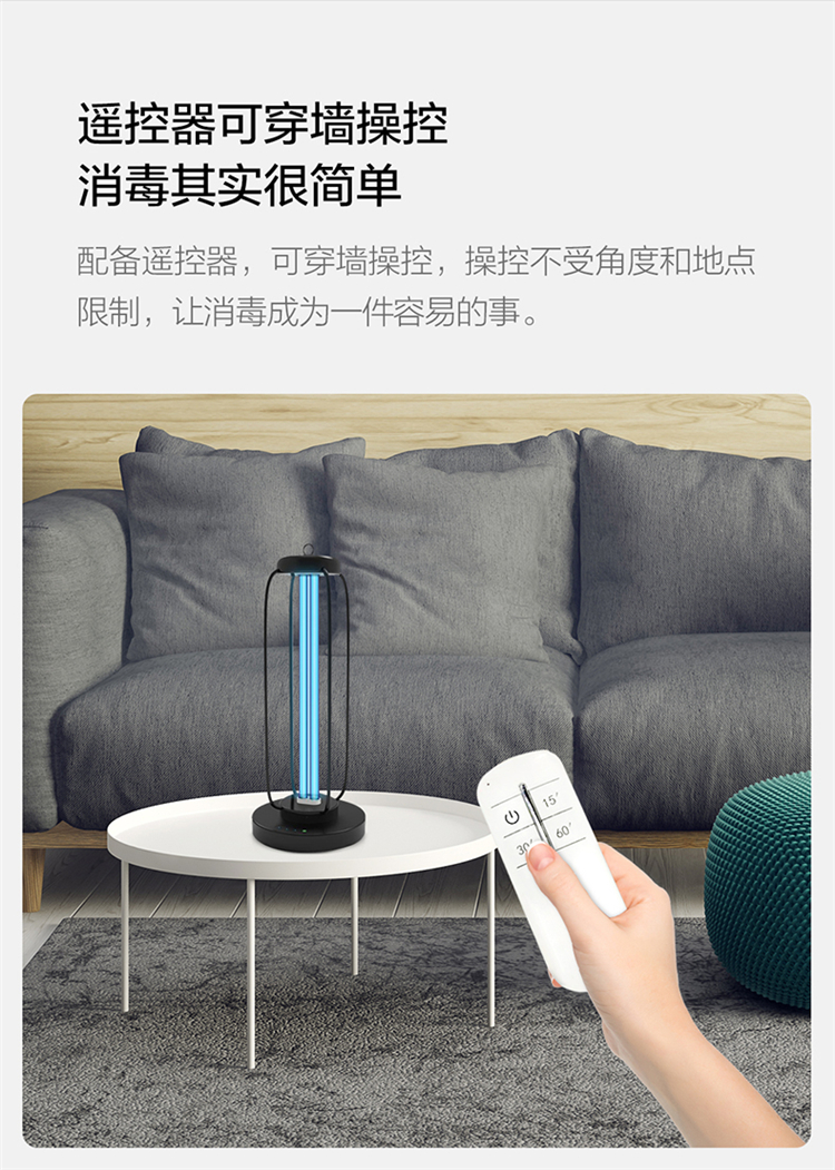 配備遙控器,可穿墻操控,操控不受角度和地點限制,讓消毒成為一件容易的事。