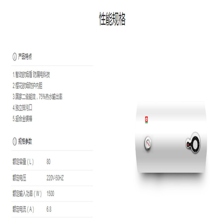 櫻花SEH-8002E快熱系列電熱水器儲水式速熱電熱水器產品參數