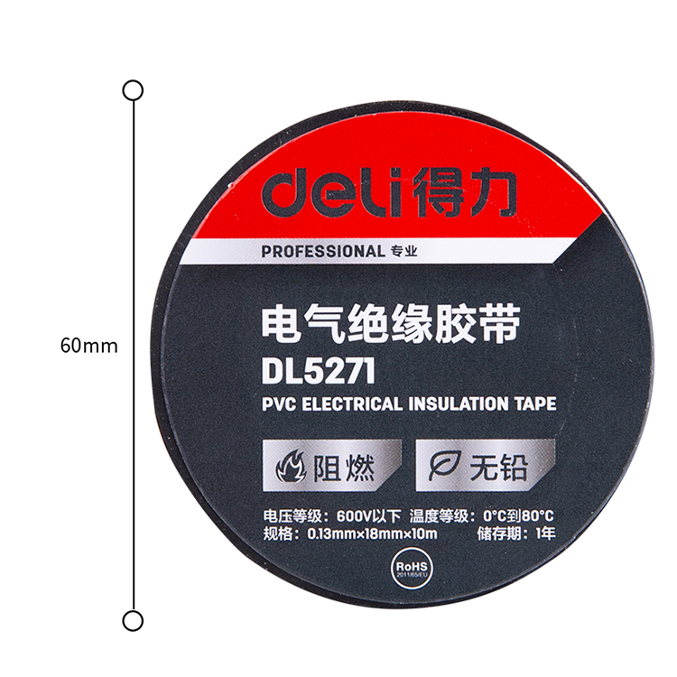 得力DL5271專(zhuān)業(yè)級(jí)電氣絕緣膠帶(黑),有良好的絕緣性能,耐電壓能力強(qiáng)。