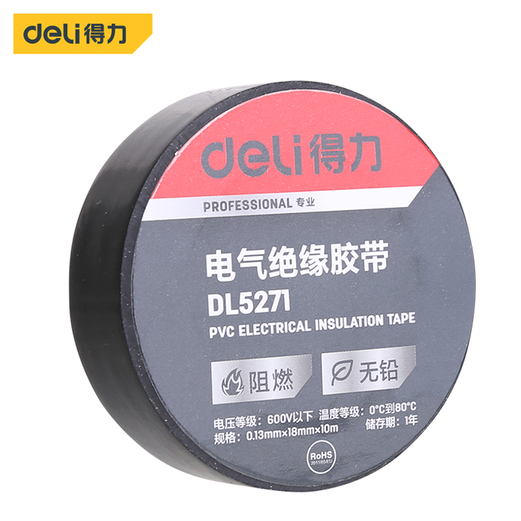 得力電氣絕緣膠帶DL5271電工電線膠布PVC防潮耐高溫
