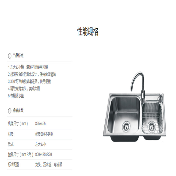櫻花ST-3217水槽廚房S304不銹鋼水槽洗菜盆單槽帶支撐架子大小洗碗臺盆手盆池性能規格
