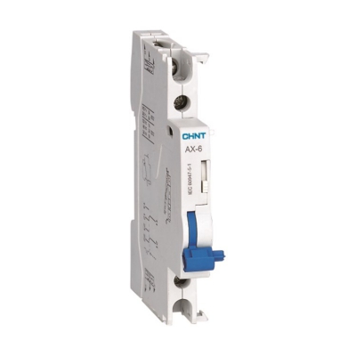 正泰AX-6輔助觸頭主要用于交流50Hz,額定發(fā)熱電流至6A,額定電壓至415V或直流額定電壓至130V的線路中,其與NB1系列斷路器拼裝,作遠(yuǎn)距離斷路器通斷的信號指示之用。符合標(biāo)準(zhǔn):GB/T 14048.5、IEC 60947-5-1,獲得CCC、CE認(rèn)證。