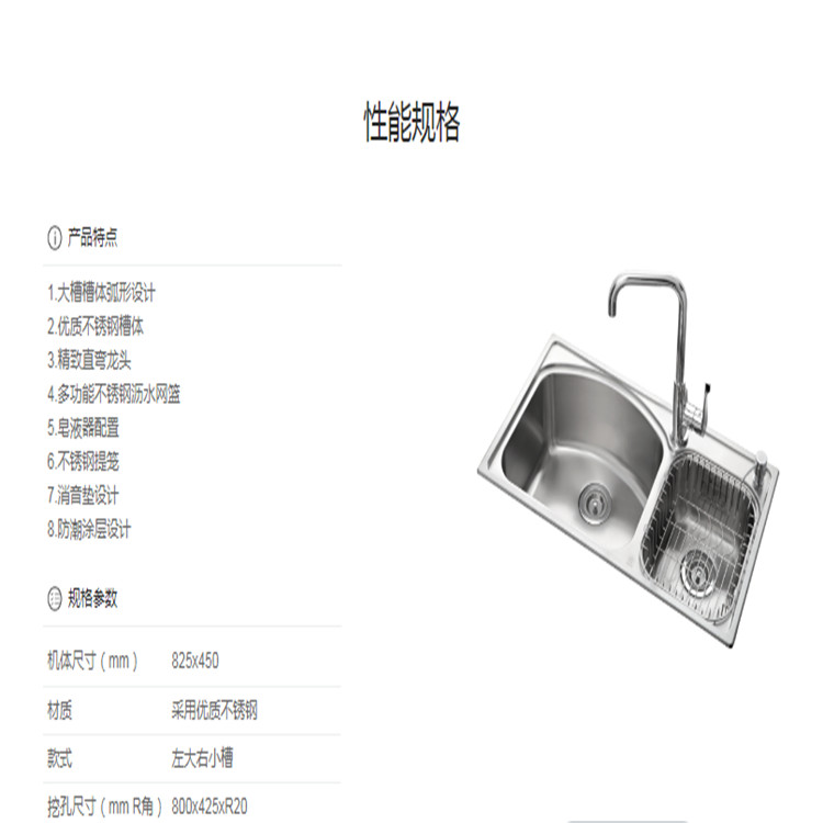 櫻花ST-3216N水槽廚房S304不銹鋼水槽洗菜盆單槽帶支撐架子大小洗碗臺盆手盆池性能規格