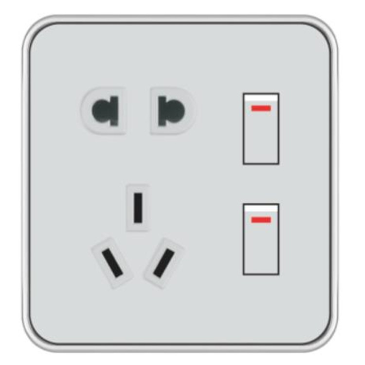 施瑯格飛騰系列二位雙控帶二、三極插座,懸擺技術,開關壽命長