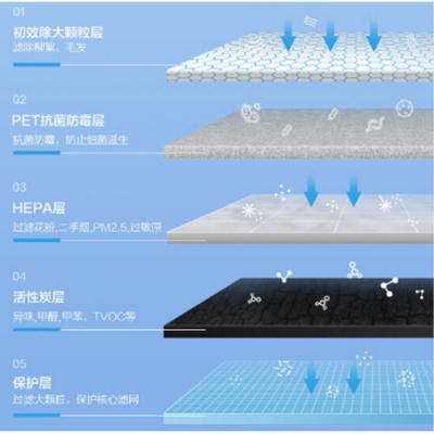 美的(Midea)空氣凈化濾網五層復合濾網,精細過濾,高效濾除。