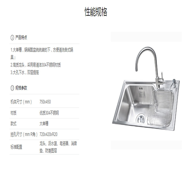 櫻花ST-5101水槽廚房S304不銹鋼水槽洗菜盆單槽帶支撐架子大小洗碗臺(tái)盆手盆池性能規(guī)格