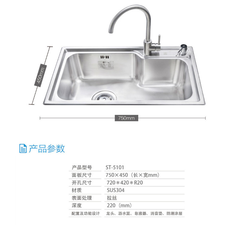 櫻花ST-5101水槽廚房S304不銹鋼水槽洗菜盆單槽帶支撐架子大小洗碗臺(tái)盆手盆池產(chǎn)品參數(shù)