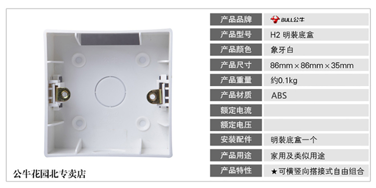 公牛開關(guān)插座底盒H2強(qiáng)度高,抗沖擊性好