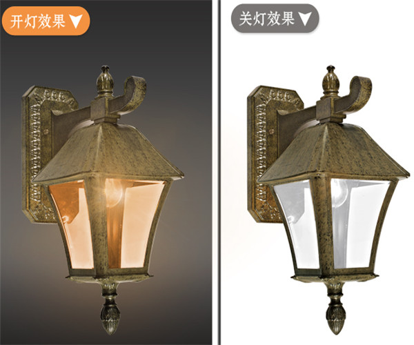 帝之苑戶外壁燈DH-60515白熾燈節能庭院照明燈開燈、關燈效果圖