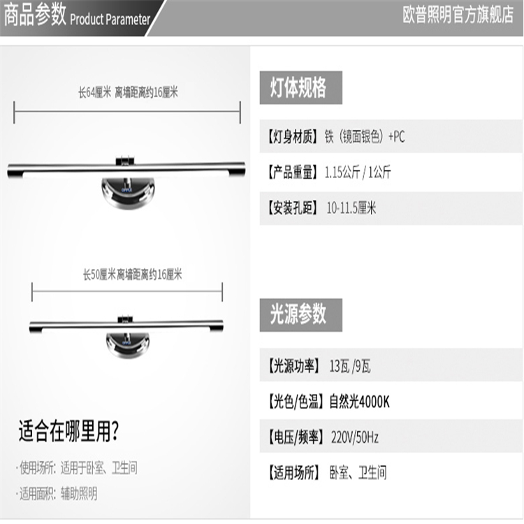 - 型號(hào)名稱[一米陽光5】鏡柜加長(zhǎng)版10.5瓦長(zhǎng)64cm高12.5cm離墻23cm