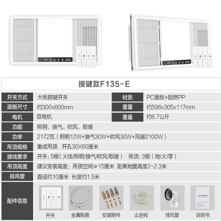 - 型號名稱A*基礎款F135*側進風,循環取暖(按鍵開關)