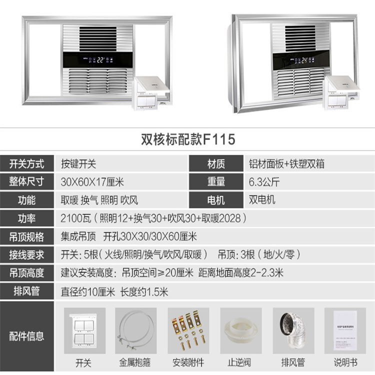 - 型號名稱【套餐B]風暖浴霸+10瓦平板燈+18瓦平板燈