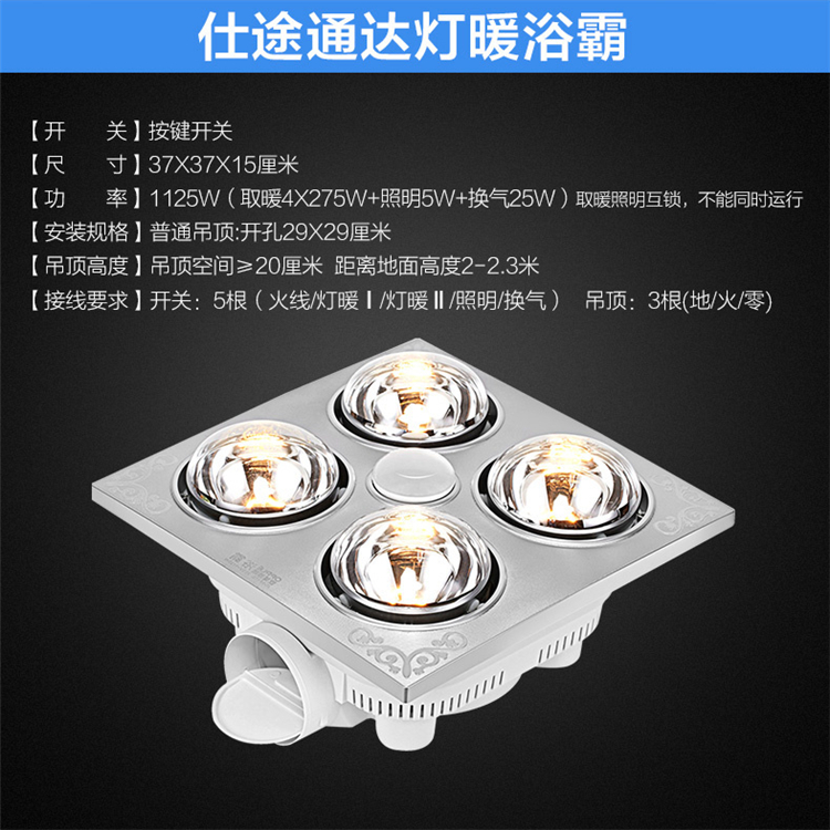 普通吊頂浴霸 風暖浴霸 取暖換氣照明三合一 仕途通達