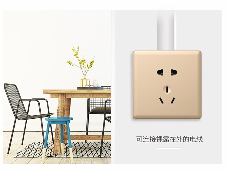 深圳施瑯格明裝插座墻壁式5孔超薄香檳金五孔插座明線電源插座