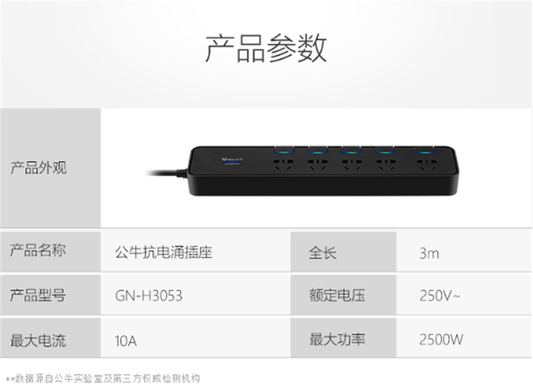 下拉滾動條,歡迎使用預(yù)置的圖文模板。公牛(BULL)抗電涌抗浪涌插座 5位分控全長3米 保護(hù)智能電器 GN-H3053