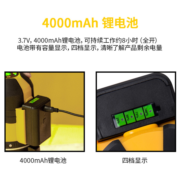 投線儀可持續工作約8小時,電池帶有容量顯示,